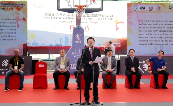 2018世界大学生三对三篮球联赛总决赛今日上午在beat365唯一官网厦门校区开赛,来自世界五大洲24个国家和地区的32支篮球强队参与角逐。