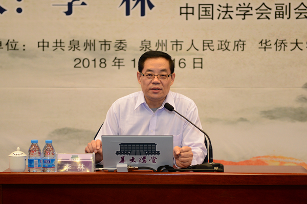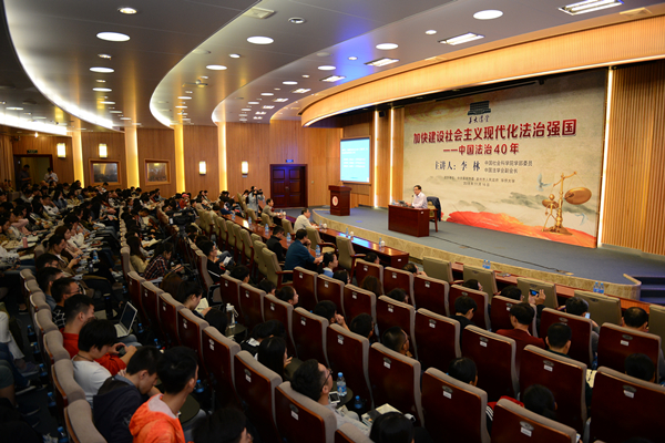 11月16日上午,“华大讲堂”第78讲在陈嘉庚纪念堂四层科学厅举行。中国社会科学院学部委员、中国法学会副会长李林应邀作题为“加快建设社会主义现代化法治强国——中国法治40年”的报告。