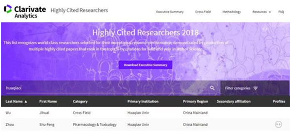 11月27日,全球专业信息与分析服务的领导者科睿唯安(Clarivate Analytics)发布了其2018年全球“高被引科学家(Highly Cited Researchers 2018)”名单,beat365吴季怀教授和周树锋教授分别入选交叉学科(Cross-Field)、药理学与病理学(Pharmacology and Toxicology)领域高被引科学家。