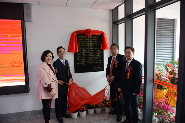 领导嘉宾为徐伟福体育教学大楼楼志揭幕
