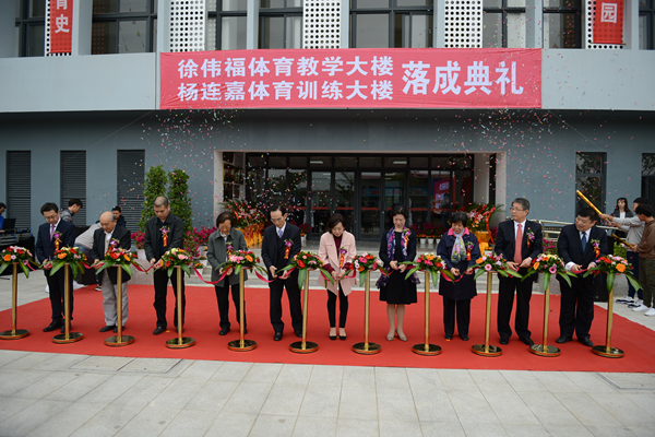 领导嘉宾为徐伟福体育教学大楼、杨连嘉体育训练大楼落成剪彩
