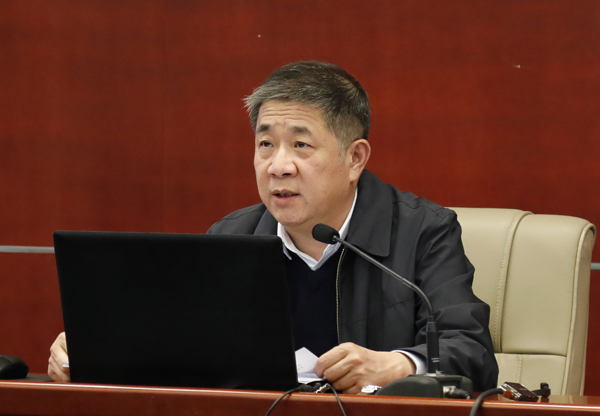 校长徐西鹏主持报告会。校领导曾路、彭霈、毕明强,校长助理张云波,全体中层干部,全体思想政治理论课教师,党委各部(室)科级干部,各学院学生工作办公室主任、团委书记,各基层党委秘书到场听取报告。