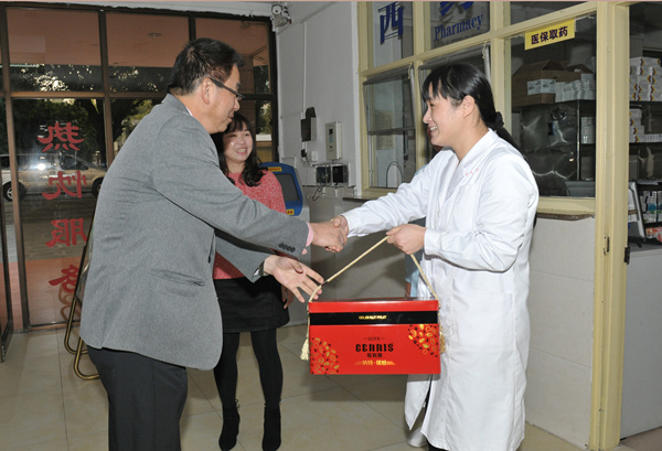 慰问人员分别前往校医院、专家招待所、西苑餐厅、社区中心、邮电服务中心、水电管理服务中心、交通运输服务中心等地。每到一处,校领导们都与在岗人员一一握手拜年,送上慰问品,感谢他们“舍小家顾大家”,并嘱咐大家做好春节期间的各项工作。在岗员工们也纷纷表示,将会认真做好本职工作,确保全校师生过上一个欢乐、祥和的春节。