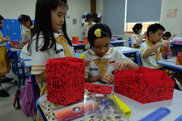 印尼学生在课堂上学习灯笼制作
