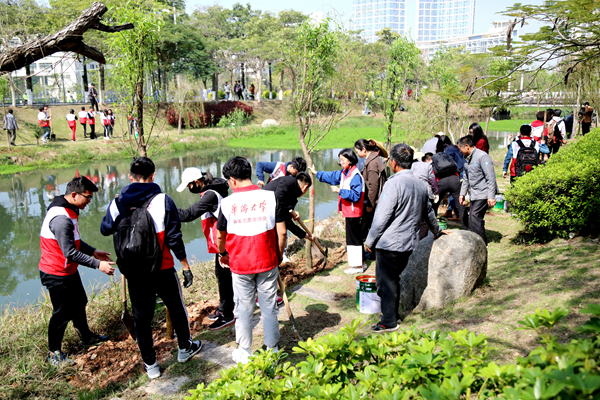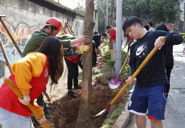 “习总书记说过,‘绿水青山就是金山银山’。践行‘生态文明建设’,搭建美丽校园、人与自然和谐校园,这对我们都有着重要的意义。”计算机学院学生辅导员燕晓彬与许多青年教师也参加了植树活动。他表示,在植树节这个特别的日子里,华大师生一起种下数十株象征着青春、活力的小树,这让他感到非常开心,“同学们在现场表现出了不怕脏不怕累的吃苦耐劳的精神,特别是很多境外生,积极主动、踏实认真,给我留下了深刻的印象。”