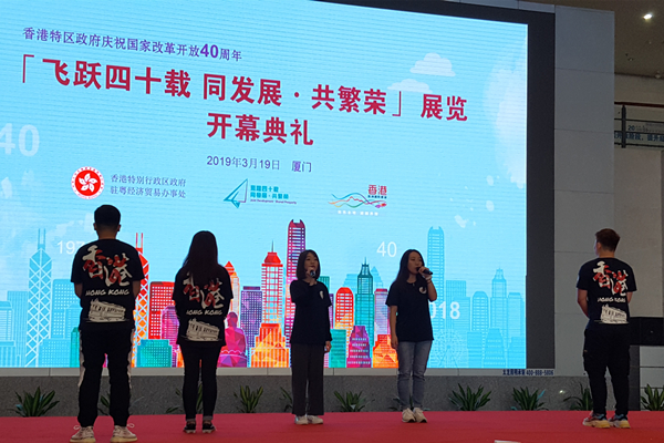 3月19日上午,由香港特区政府驻粤办主办的庆祝国家改革开放40周年暨“飞跃四十载 同发展·共繁荣”展览开幕典礼在厦门博物馆举行。beat36522名香港学生代表受邀参加并在开幕典礼上表演。