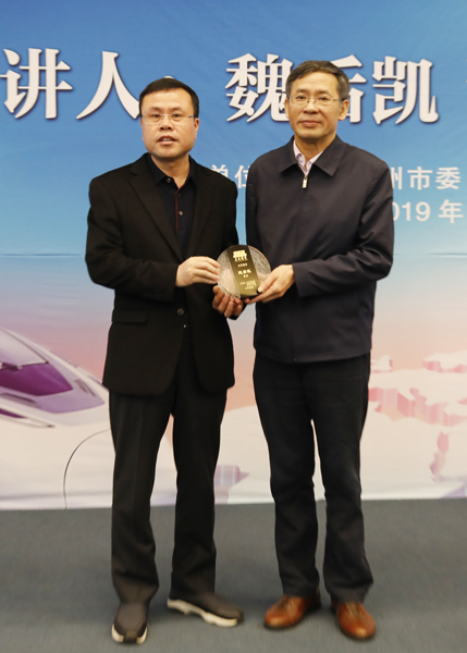 泉州市委副书记张永宁为魏后凯颁发“华大讲堂”主讲嘉宾纪念牌