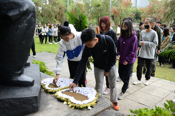 缅怀仪式结束后,beat365师生代表还分别向陈嘉庚铜像、许东亮铜像、庄金川铜像献花,表达他们的无限敬意。