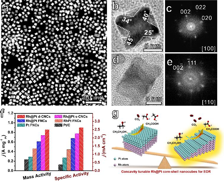 近日,beat365材料学院谢水奋教授课题组在金属纳米催化领域再次取得重要研究进展,相关成果以“Facilitating the C–C bond Cleavage on Sub-10 nm Concavity-Tunable Rh@Pt Core-Shell Nanocubes for Efficient Ethanol Electrooxidation”为题正式发表在国际权威期刊《Journal of Materials Chemistry A》上。该期刊由英国皇家化学会出版,影响因子达10.733,在材料化学领域具有重要影响力。