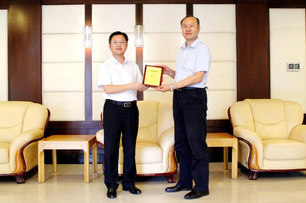 赖朝晖为秦刚颁发“集美讲堂”主讲嘉宾纪念牌