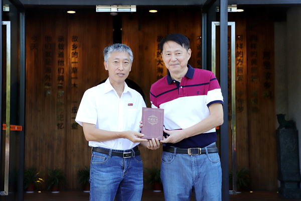 刘塨为华海镜颁发其作品《古榕新苗》的收藏证书