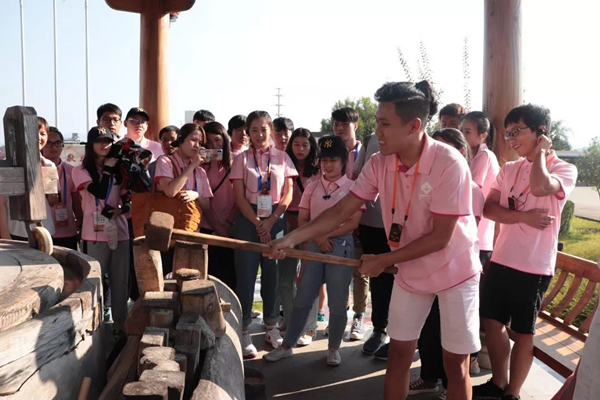 营员体验古法榨油工艺