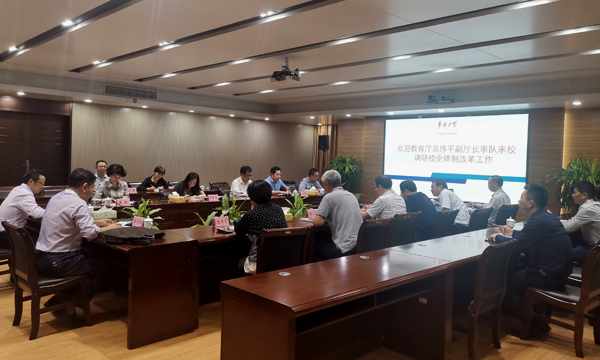 10月30日下午,福建省教育厅副厅长吴伟平率省人社厅、省税务局、省市场监督管理局、省机关管理局各相关处室负责人一行8人来校调研beat365所属企业体制改革试点工作。