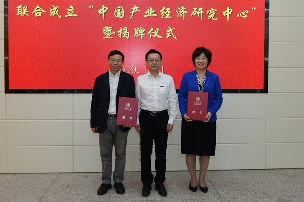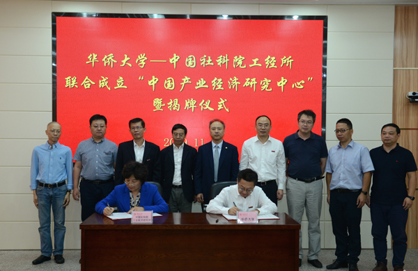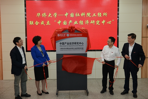 史丹、张其仔、徐西鹏、郭克莎为研究中心揭牌