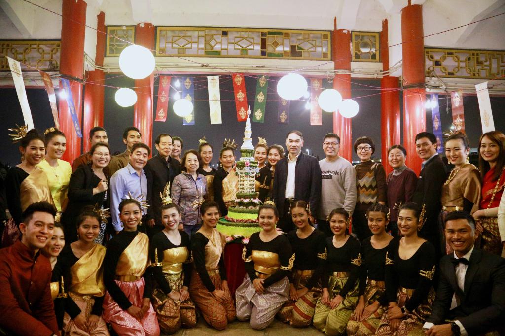 晚会尾声,遵循泰国传统习俗,在佳丽们的带领下,嘉宾们来到龙舟池畔放逐泰国学生亲手制作的传统水灯。一轮明月、一盏水灯,小小的水灯承载着中外友好合作、携手同行的美好愿景漂向远方。