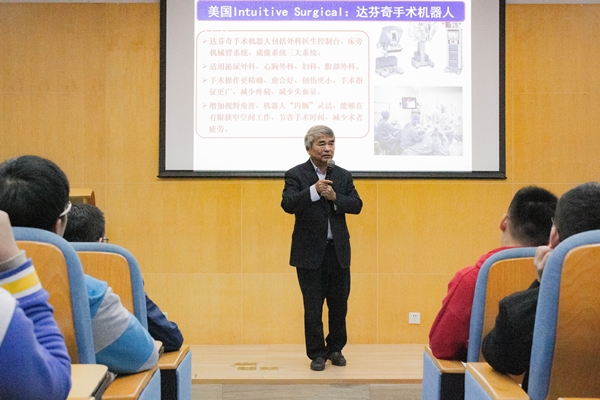 谭建荣介绍了机器人与智能机器人的十大里程碑事件,梳理了机器人领域的发展史。从智能工业机器人的内涵和特点出发,谭建荣通过讲解工业机器人智能化案例,剖析了智能工业机器人的技术发展方向,指出我国智能工业机器人发展所面临的诸多挑战。谭建荣还分享了他所在团队在该领域的相关研究成果,讲解了有关智能工业机器人应用的关键技术,并勉励同学们着眼于实际,在实际需要的基础上开展相关科研工作。