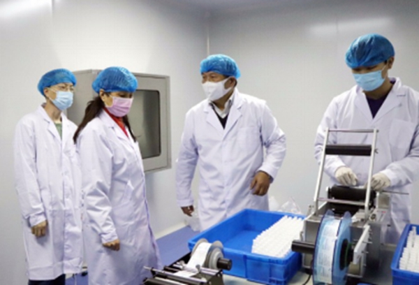 泉州市人大常委会副主任吴友才3月31日上午来到华创园beat365唯一官网材料学院应用化学研究所协同创新中心及成员单位泉州锋盛新材料科技有限公司,视察并调研防疫消毒新产品。