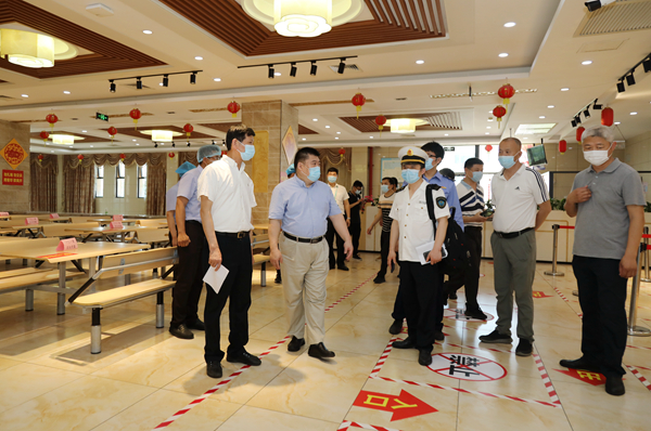 督导组一行到餐厅查看就餐环境及间隔就餐等防控措施