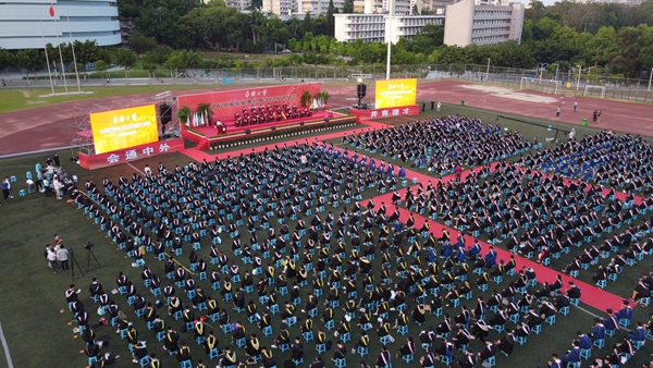 两校区毕业典礼现场,来自菲律宾、泰国、马来西亚、缅甸、巴西等国家以及中国香港、澳门、台湾地区的多位毕业生代表通过现场网络连线的方式,分享自己的毕业感悟,表达对母校的感谢之情。