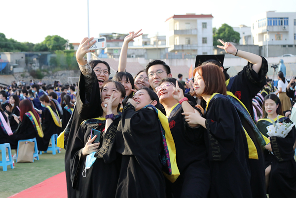 “从2016年的第一眼到如今的最后一面,我们年少的身影,一直住在彼此的青春之中,也刻在华大60年的光阴里……”毕业典礼上,文学院乔天锐、化工学院李爱多作为毕业生代表发言,并共同带领全体毕业生宣誓:“不忘父母养育,铭记师长教诲。会通中外文化,并育善德博才。让先进成为个性,让优秀成为习惯。勤奋务实,用汗水和才智追求真理。果毅力行,以青春和热血奉献社会。敢于担当,以奋斗之我谱写壮丽华章。擦亮侨校金字招牌,让明日的beat365唯一官网以我为荣!”