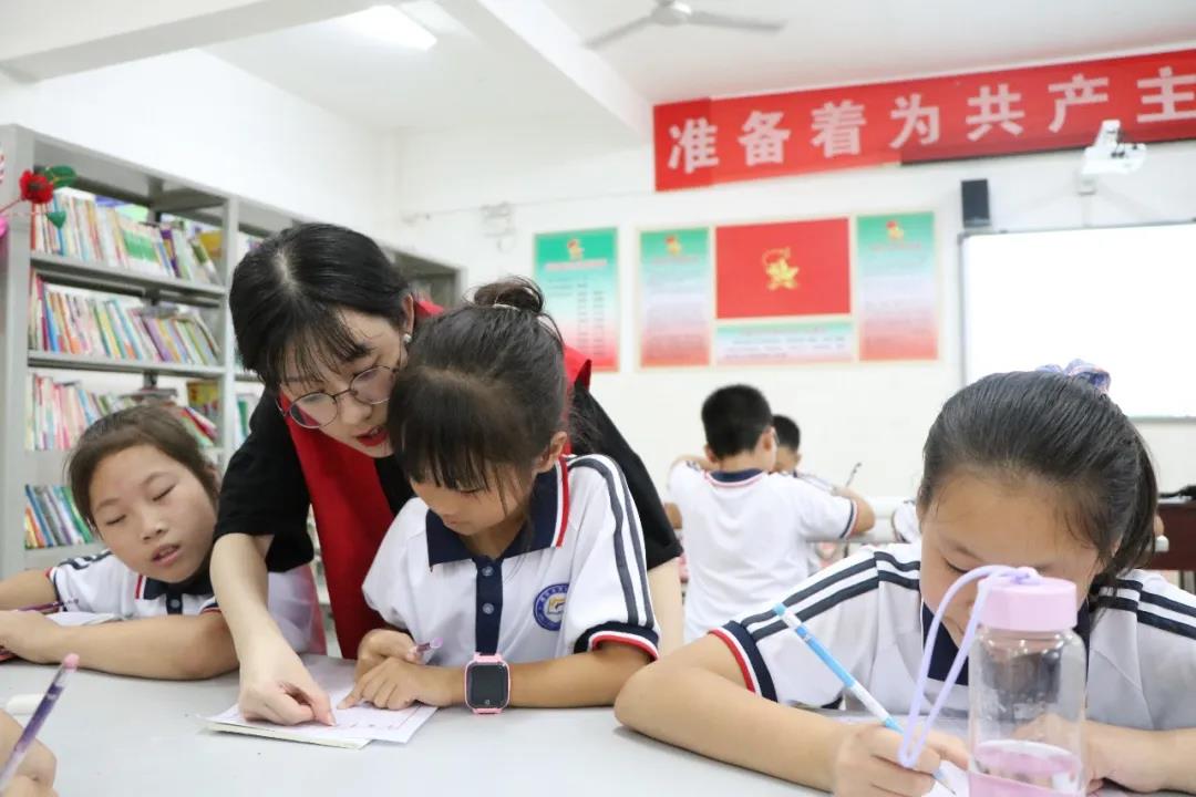 7月14日上午,三明市将乐县万安镇中心小学,有几个身穿红马甲的“老师”忙碌着。
