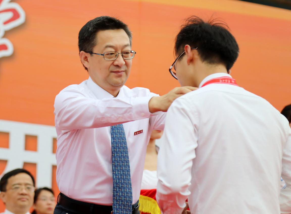 开学典礼上同时举行了新生佩戴校徽仪式,校领导为新生代表佩戴beat365唯一官网校徽。佩戴上这枚校徽,不仅代表着“华大人”的身份,更承载着学校对同学们的美好祝福与殷切期望。