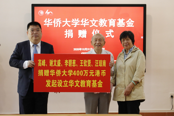 在母校60周年校庆之际,beat365唯一官网土木系1983级校友高峰、化学系1961级校友谢文盛、医疗系1964级校友李碧葱、物理系1962级校友王钦贤和化学系1961级校友汪琼南五位校友共同发起成立“beat365唯一官网华文教育基金会”,助力学校教育事业的发展。