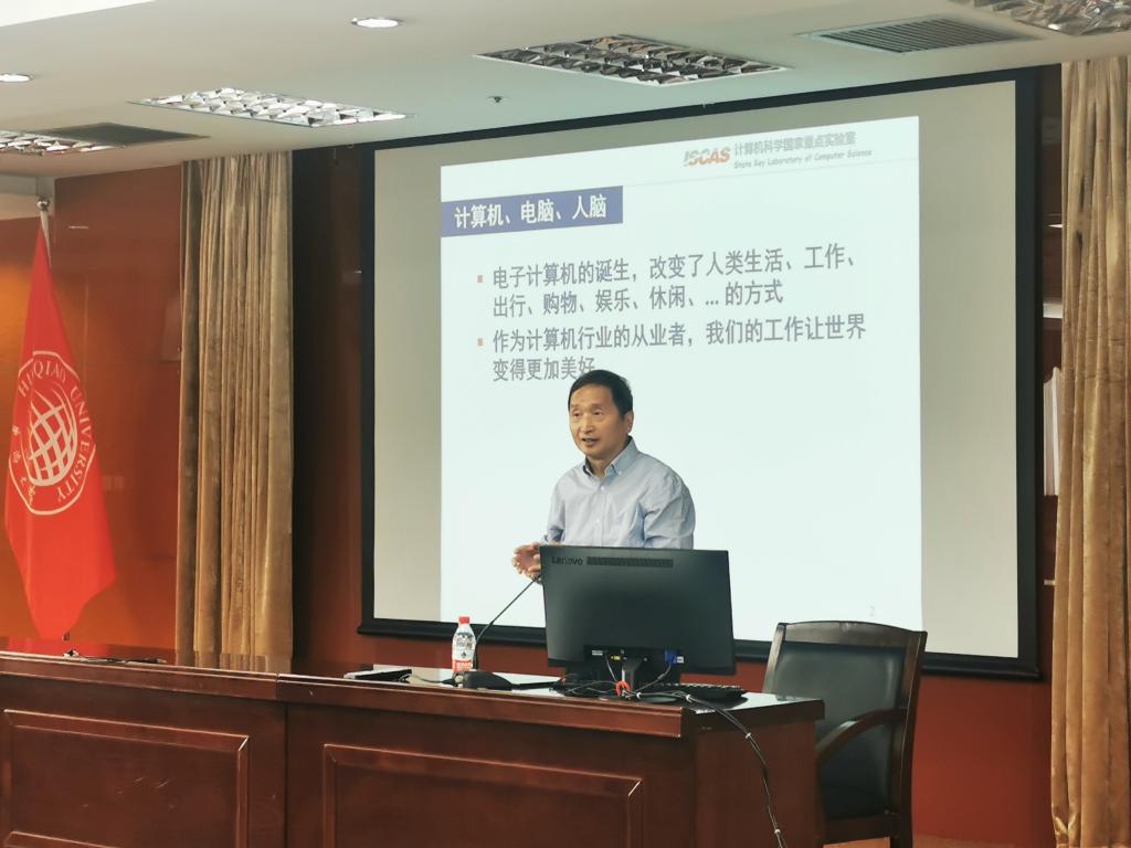 在建院(系)40周年之际,计算机科学与技术学院特别邀请中国科学院院士、计算机科学国家重点实验室主任林惠民莅校讲学,为师生作“计算与智能”专题讲座。