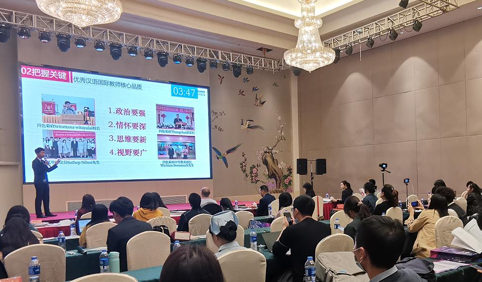 立志成为一名知名汉语国际教师的陈泽豪,坚持“将优秀中华传统文化传播到五湖四海”的初心与使命,在现场结合自身经历与时代背景,将个人理想与学校办学使命、国家需求相结合,明确短期、中期、长期发展目标。面对评委的提问,从容自信地表达了“讲好中国故事,传播中华文化”的职业理想,同时,也呼吁更多的青年人一起为中华文化的传播贡献青春力量。