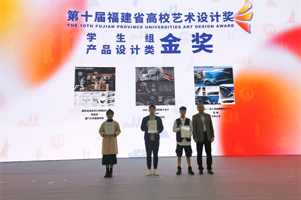 获奖作品分别为:美术学院“古城边三轮”(作者:吴彦、任磊)获教师组产品设计类金奖、《贝提拉——无人驾驶睡眠概念巴士》(作者:梁峰,指导教师:任磊)获学生组产品设计类金奖、《皮影戏胸针文创设计》(作者:贺依杰,指导教师:冷昊楷)获学生组视觉传达设计类金奖;“大爱无疆”抗疫宣传海报(作者:李诗芸)获教师组视觉传达设计类银奖、“beat365唯一官网建校60周年‘清源华彩’系列作品展视觉识别系统”(作者:李诗芸)获教师组视觉传达设计类银奖、“泉州百姓书房形象设计”(作者:孟凡军)获教师组视觉传达设计类银奖;“‘秋荷一滴露’空气加湿茶器”(作者:崔洪亮、熊微)获教师组产品设计类铜奖、“难寐”(作者:郑婷,指导教师:李诗芸)获学生组数字动画类铜奖、“《绘志中国》”(作者:杨朔、陈超、王飞、汤敏锐、吴致廷,指导教师:李诗芸)获学生组数字动画类铜奖、“Magic space-概念汽车设计”(作者:曾紫荆,指导教师:任磊)获学生组产品设计类铜奖。
