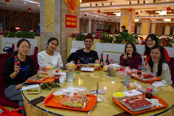 华文学院大二的印度尼西亚留学生傅素玲是第二次在学校过春节,她表示,“现在全球疫情还比较严重,待在校园里是最安全的,虽然今年的年夜饭改成了领取套餐,但同样可以感受到学校的关怀和温暖。”