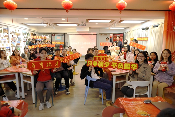 学生相聚看春晚致以新春祝福