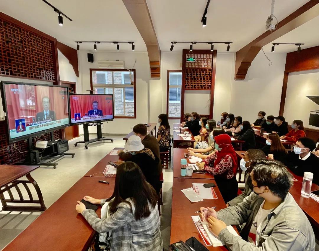 当日,白家嘉和他的同学,beat365唯一官网华文学院来自美国、爱尔兰、印度尼西亚、缅甸、泰国、老挝、毛里求斯、秘鲁等国家的40名外国留学生,一起观看十三届全国人大四次会议开幕会直播,解读“两会”的中国信号,畅谈“两会”议题,点赞中国发展。