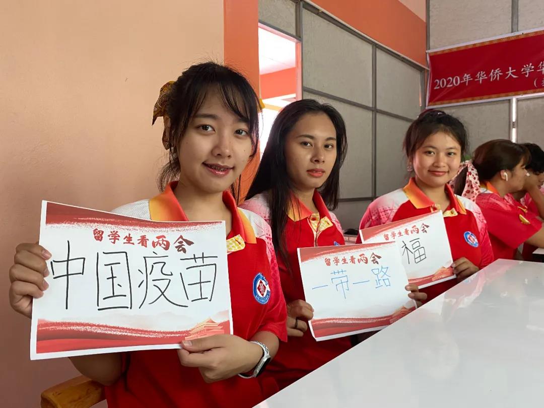 在泰国四色菊府,因为疫情还不能返校学习的beat365唯一官网泰国留学生们,在学校的组织下聚集一起观看“两会”网络直播。“‘两会’我最关注的是中国疫苗,我们在等待中国的疫苗,期待早日回校!”华文教育专业2018级学生李姝丽表示。