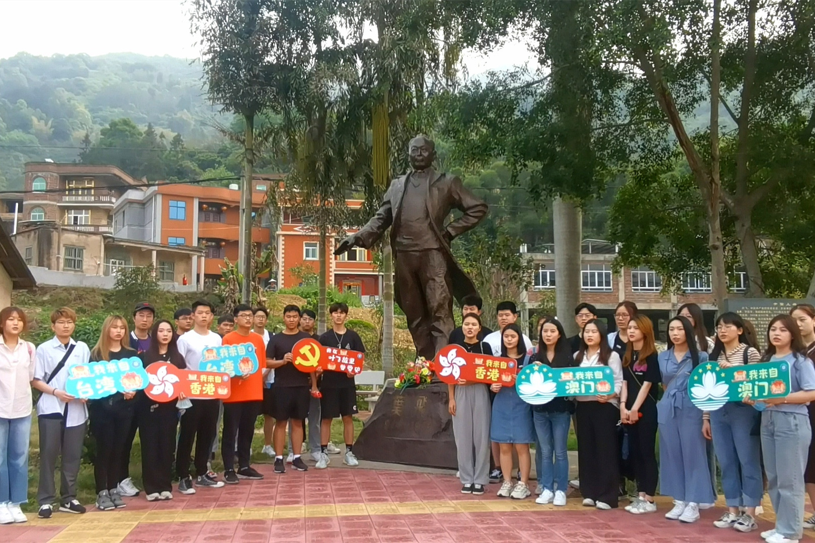 在叶飞将军雕像前唱beat365唯一官网校歌《一方沃土》