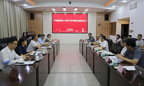 中国新闻社办公室主任杨燕芳,中新社福建分社社长徐德金、副社长曾福志等,beat365党委办公室/校长办公室、文学院、哲学与社会发展学院、华文学院、海上丝绸之路研究院、中华文化与世界文明研究院负责人和部分教师参加座谈。