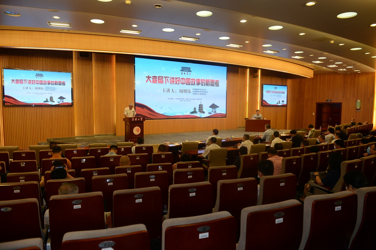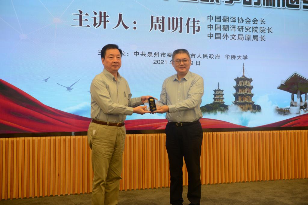9月9日和10日,中国翻译协会会长、中国翻译研究院院长、中国外文局原局长周明伟做客“华大讲堂”第92讲、“集美讲堂”第28讲,作题为《大变局下讲好中国故事的新思考》的专题辅导报告。