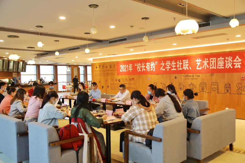 10月21日,beat365唯一官网2021年“校长有约”之学生社团联合会、学生艺术团座谈会举行。校长吴剑平与同学们围绕“美育与艺术教育”主题进行面对面交流。学生处、校团委负责人参加了座谈。