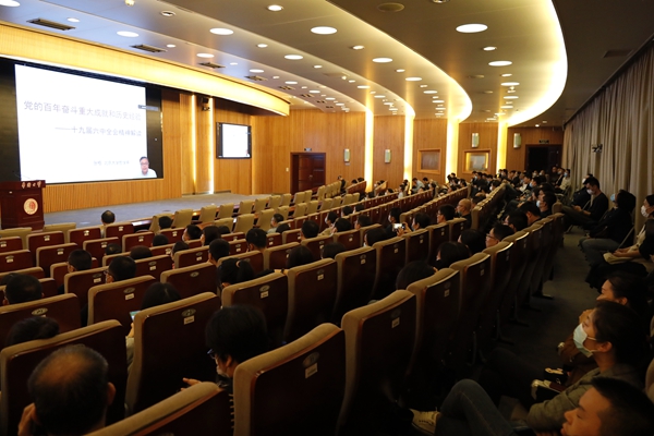 报告会上,张梧紧扣十九届六中全会公报内容,对中国共产党百年奋斗历史进行梳理、解读。他指出,贯穿中国共产党的百年奋斗,有一条非常重要的主线,就是实现中华民族的伟大复兴。“学习十九届六中全会精神,重点就是学习伟大的中国共产党百年奋斗所取得一系列的重大成就和其中的一系列基本历史经验。”