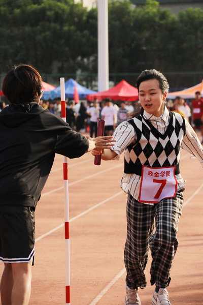 在备受瞩目的百米飞人大战中,数学科学学院2018级维吾尔族学生玉素甫·木合塔连续第四年夺冠,由他领衔的数学科学学院接力队伍也在学生男子组4×100米接力赛中折桂。在学生女子组,政治与公共管理学院的胡妍妍夺得100米比赛的冠军,而工商管理学院则将4×100米冠军收入囊中。