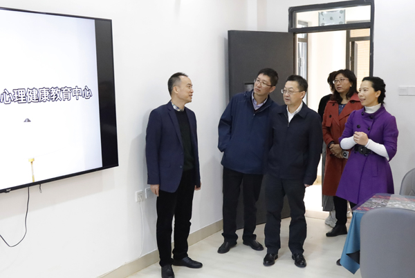 调研期间,徐西鹏还参观了心理健康教育中心跨文化咨询室、沙盘治疗室、音乐放松室以及团体辅导室等工作场所。