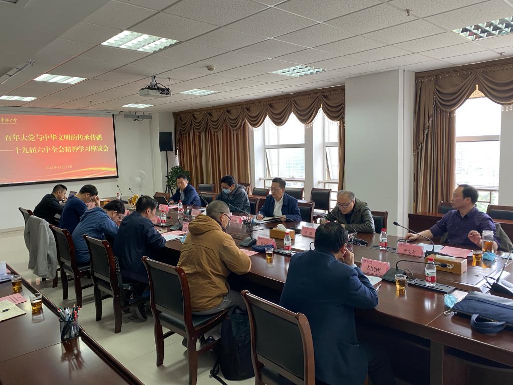 11月23日下午,beat365中华文化与世界文明研究院在厦门校区行政研发大楼2013会议室组织召开专家座谈会,学习党的十九届六中全会精神,研讨“百年大党与中华文明的传承传播”。校党委书记徐西鹏、副校长曾路出席。