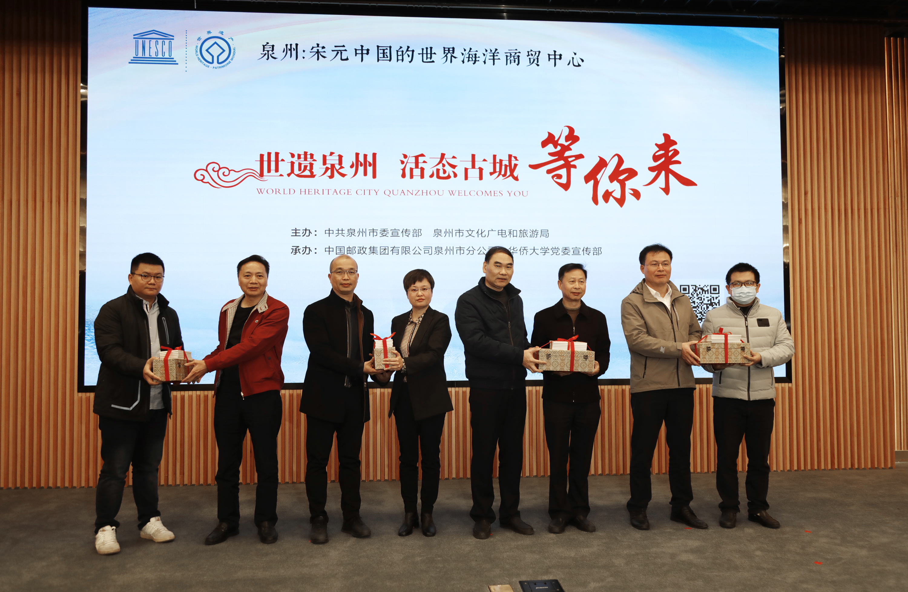世遗主题明信片和《锦绣刺桐城》卷轴赠送现场
