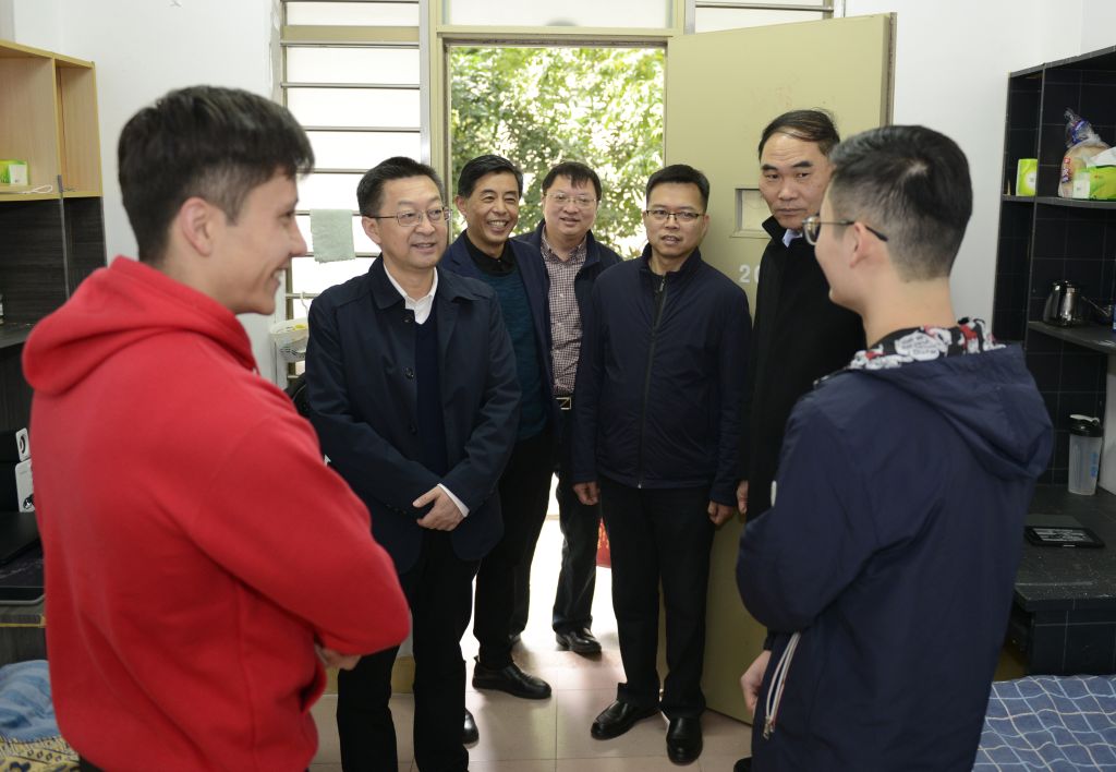 “寒假留校还习惯吗?”“寒假主要有什么安排”“有没有什么需要学校帮助解决的?”……徐西鹏一行走进学生宿舍,详细询问同学们在校的生活学习情况,勉励大家利用好假期时间充实自己,在华园开开心心过个好年。