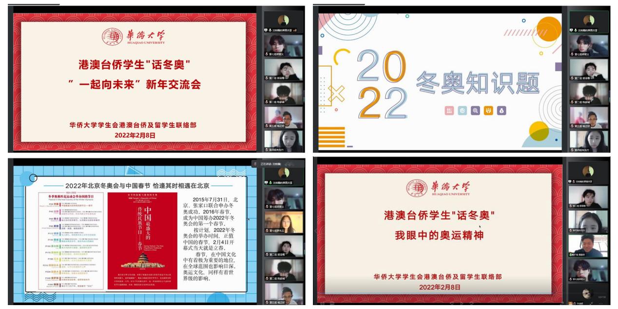 2月8日,由学生处主办、校学生会承办的港澳台侨学生“一起向未来”新年交流会在线上举行。“一起向未来”为奥林匹克格言提供了中国注解,表达了全世界共创美好未来的共同愿望,也与中国推动构建人类命运共同体的大国担当不谋而合。交流会上,同学们纷纷畅谈收看心得,并分享“我眼中的奥运精神”。