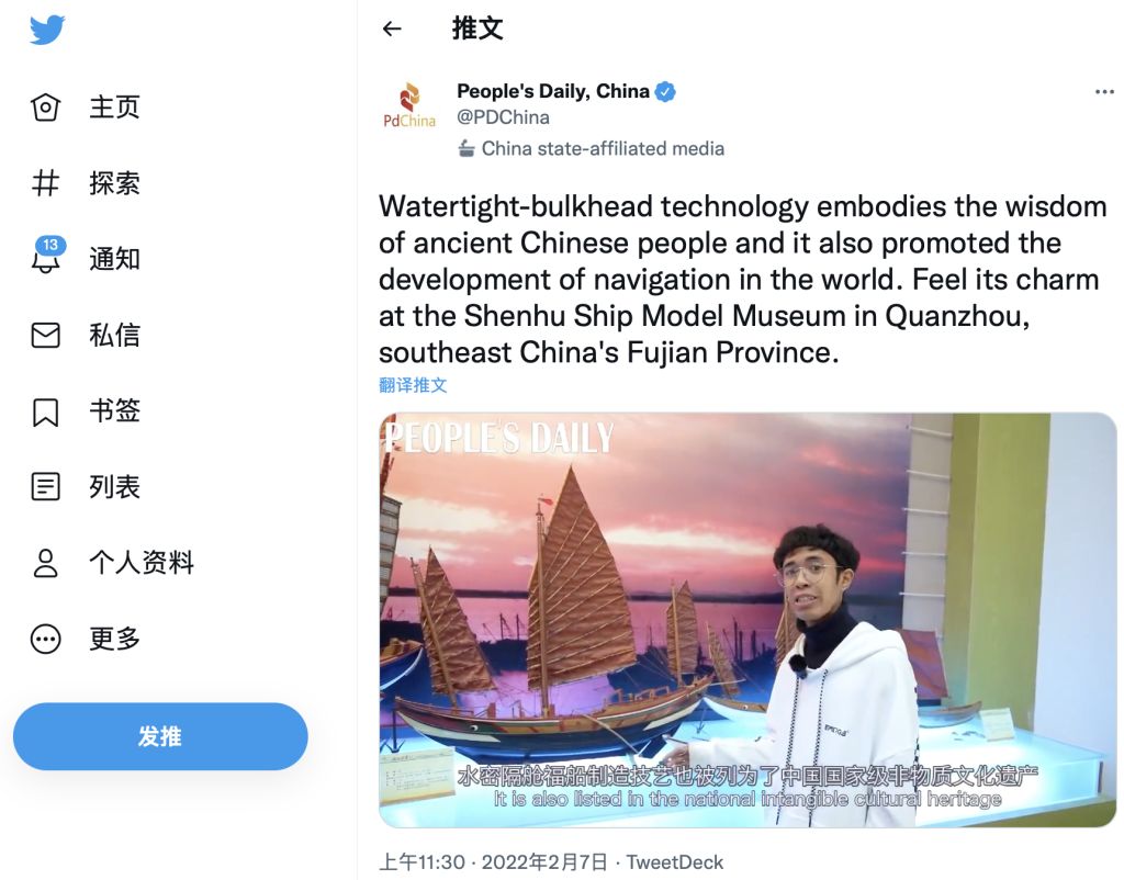 水密隔舱福船制造技艺、布袋木偶戏、磁灶陶瓷雕塑技艺、无骨花灯……壬寅虎年新春之际,beat365唯一官网“海外新声代”新媒体工作室的来自印度尼西亚、菲律宾、毛里求斯等国家的华裔留学生到福建多地学习非遗技艺、体验年俗文化,拍摄“我在中国学非遗”系列视频,向海外网友推广中华文化,通过“青年话语”链接世界青年,多期视频被人民日报、中央广播电视总台国际在线转发推送。