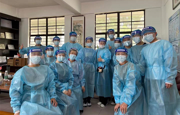国际处邹冰心同志的家属刚做完手术不久,孩子也年幼,但她仍每日坚持参与核酸检测志愿服务工作。谈及此,她轻描淡写:“大家都是为了守护华园,责无旁贷。”