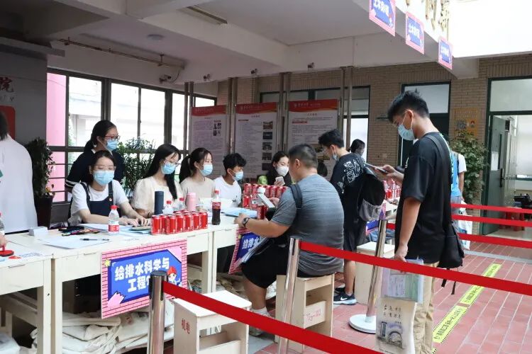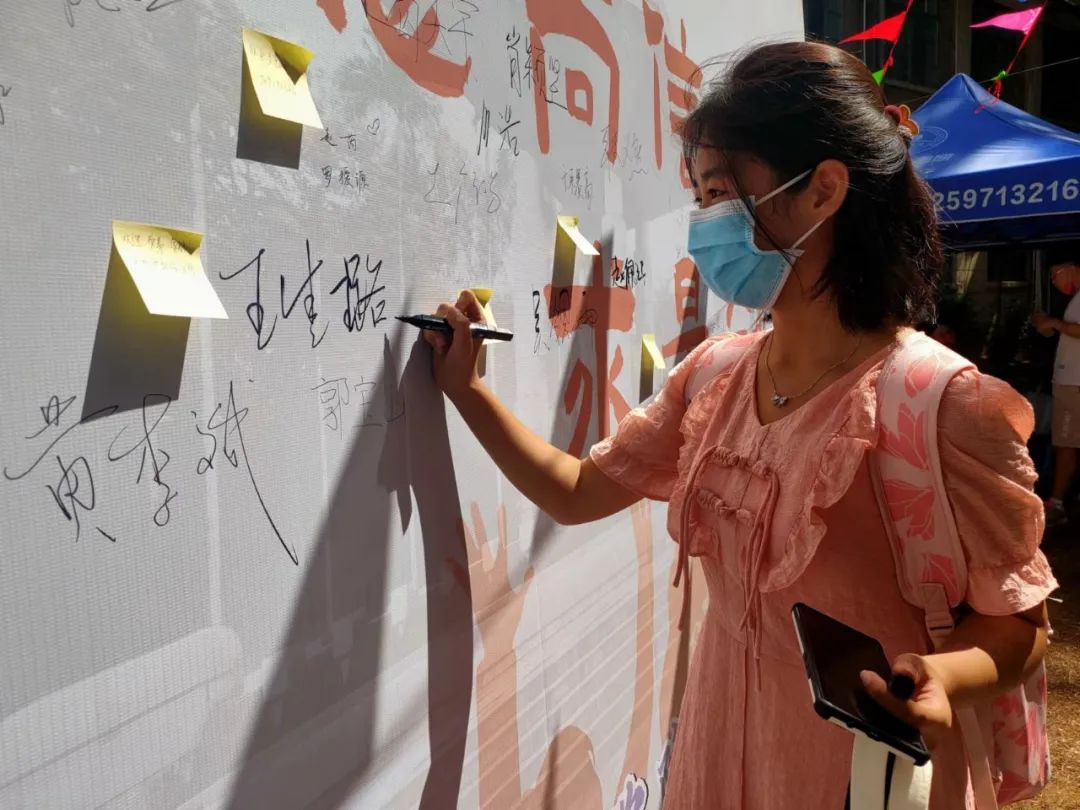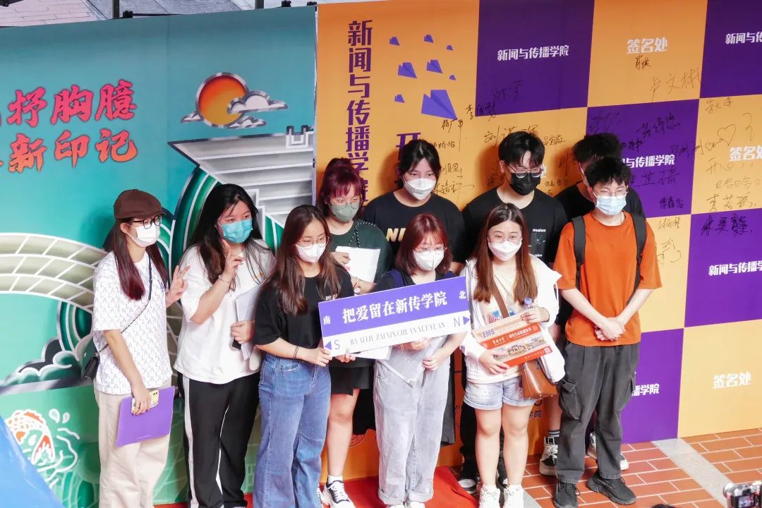 建筑学院同样别出心裁,将活动平台分设两个板块,在迎新的同时满足防疫要求。其中,一楼平台有寄语墙,新生写下对大学生活的展望;三楼平台特别安排了摄像与采访,记录新生入学时刻;