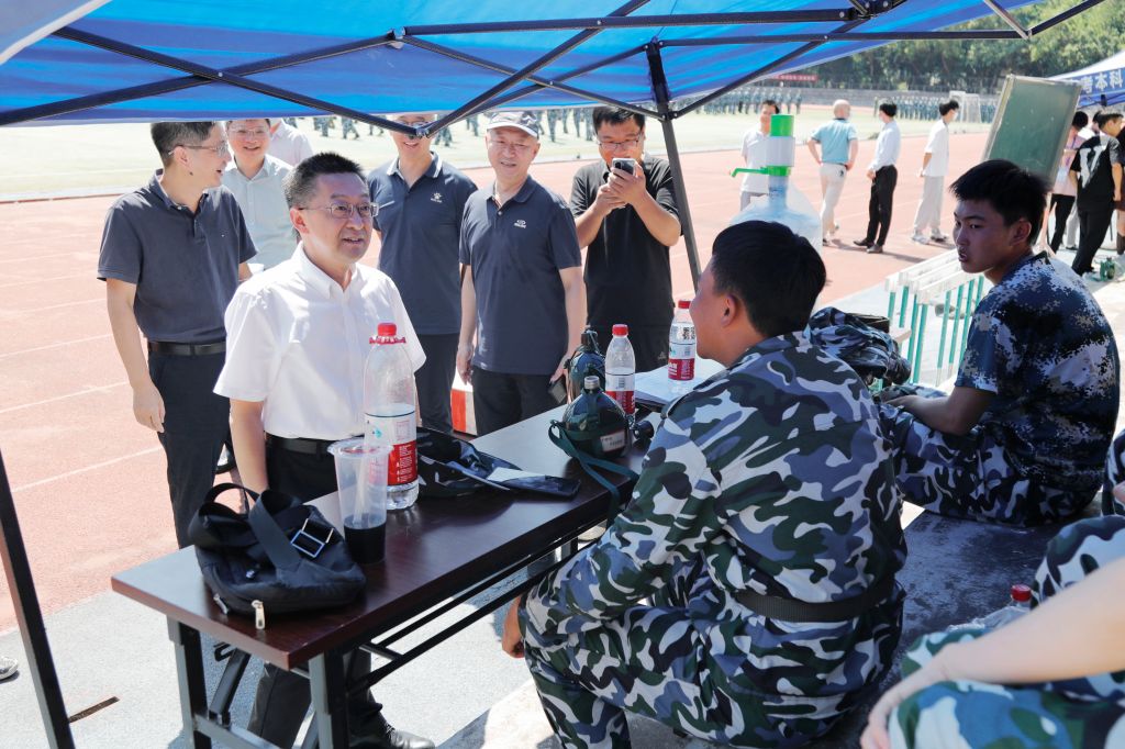 在军训现场,徐西鹏、吴剑平一行观摩了学生训练,向有关人员详细了解军训工作开展情况,对军训过程中教官的严格要求、带训辅导员的辛勤付出和同学们的刻苦训练表示肯定。