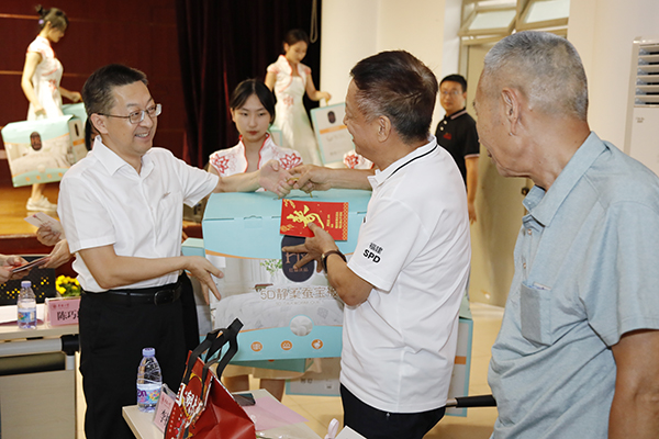 校党委书记徐西鹏为老寿星发放纪念品